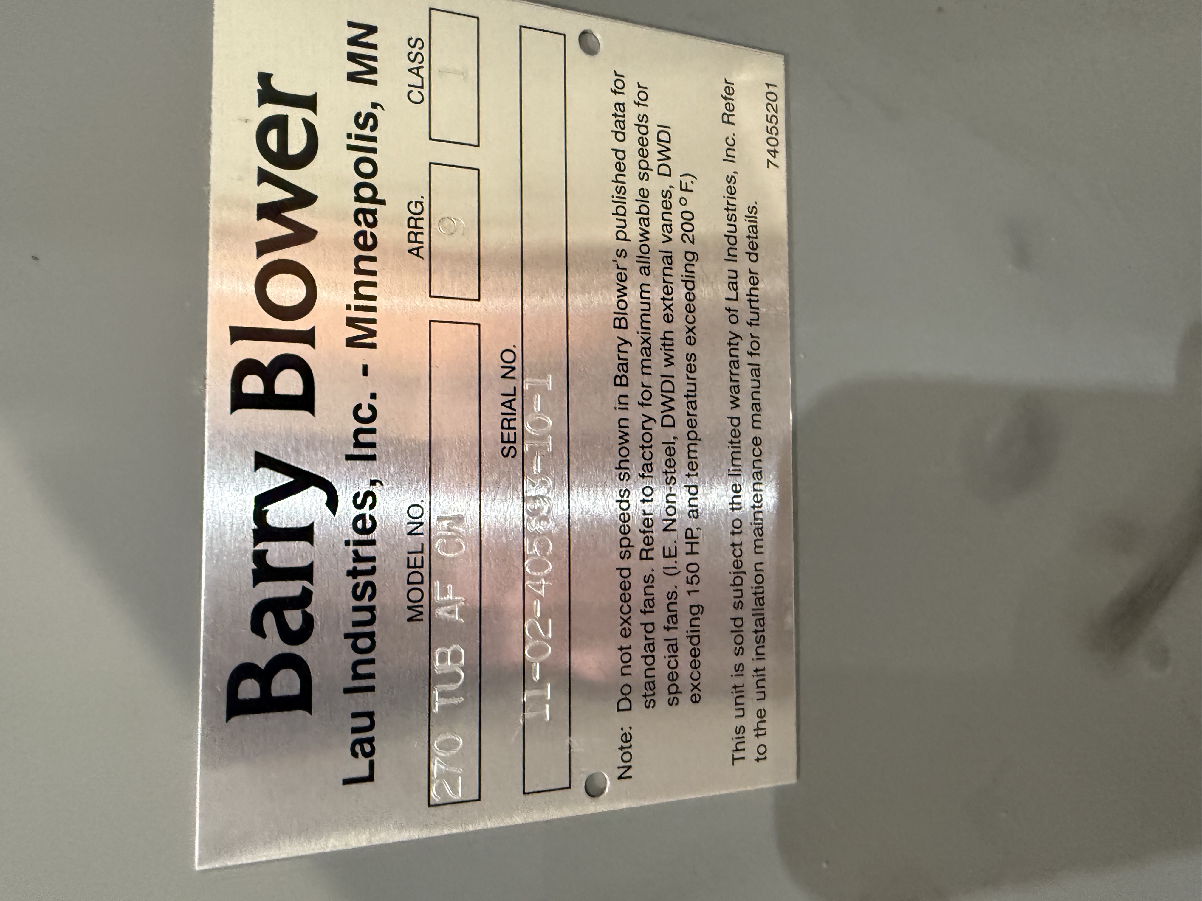 | Serial #: | 11-02-405693-10-1 |
